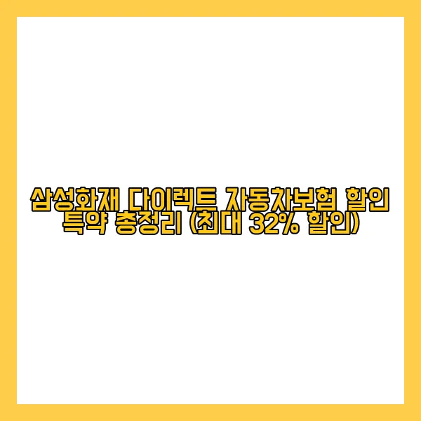 자동차보험은 현대 사회에서 필수적인 금융 상품으로 자리 잡았습니다. 특히 삼성화재의 다이렉트 자동차보험은 다양한 할인 혜택을 통해 최대 32%까지 보험료를 절감할 수 있는 기회를 제공합니다. 이번 포스팅에서는 삼성화재의 자동차보험 할인 특약을 상세히 알아보도록 하겠습니다!